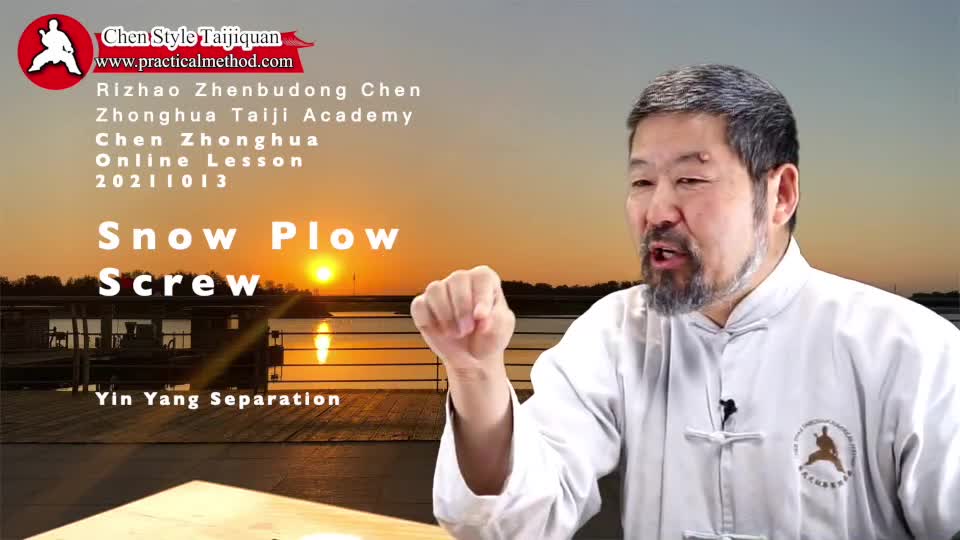 Master Chen Zhonghua uses a snow plow and screw to explain the nature of yin yang separation in Chen Style Taijiquan Practical Method.